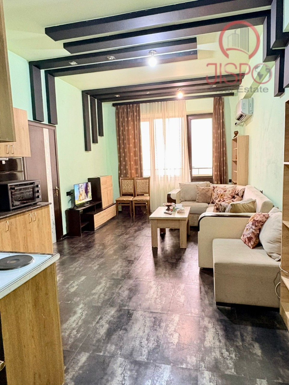 A fully furnished apartment equipped with all essential appliances, offering a comfortable and convenient living space in a central location.